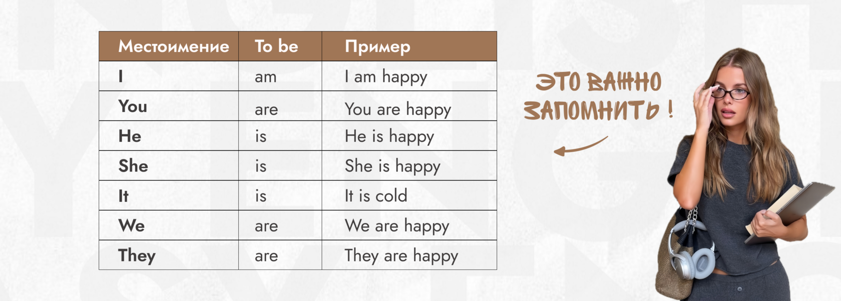1. Формы глагола to be в настоящем времени (Present Simple)
