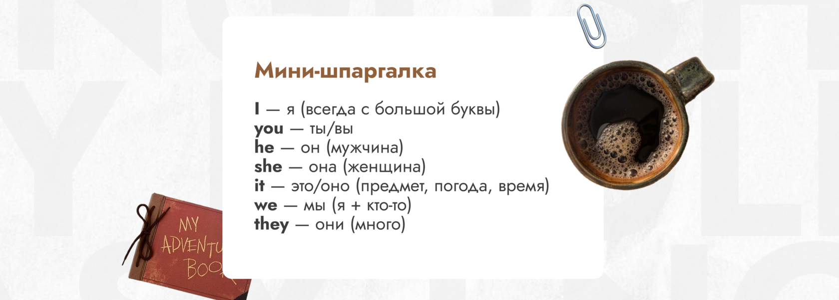 • (слово «есть» в русском мы не говорим, но в английском оно обязательно)